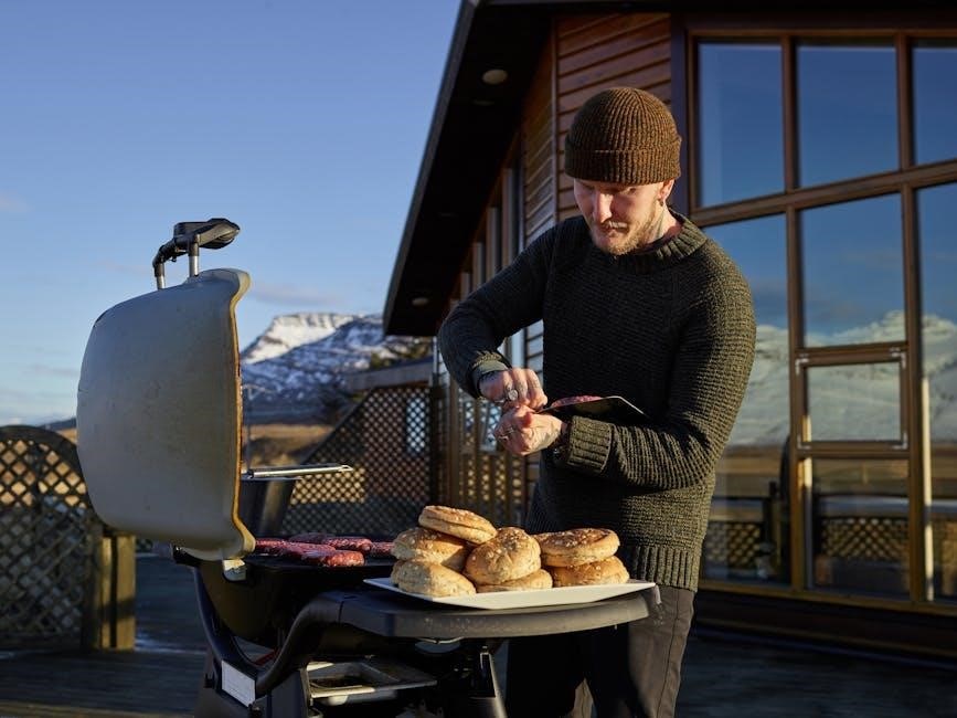 If the igniter fails, check the power supply and ensure the pellet auger is functioning correctly. Temperature fluctuations can often be resolved by verifying proper pellet flow and ensuring the grill is shielded from wind. Consult the manual’s diagnostic section for detailed steps and potential solutions to common operational challenges, maximizing your grilling experience.