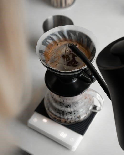 If coffee overflows, avoid overfilling the filter basket and ensure it’s correctly positioned. Weak coffee often indicates insufficient coffee grounds or stale coffee. For error messages, consult the full instruction manual for specific codes and solutions.